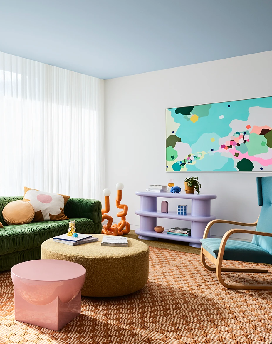 Painting your ceiling can be a great way to add more colour to your room and add another dynamic. Do a trial run to see how a colourful ceiling can influence your space.